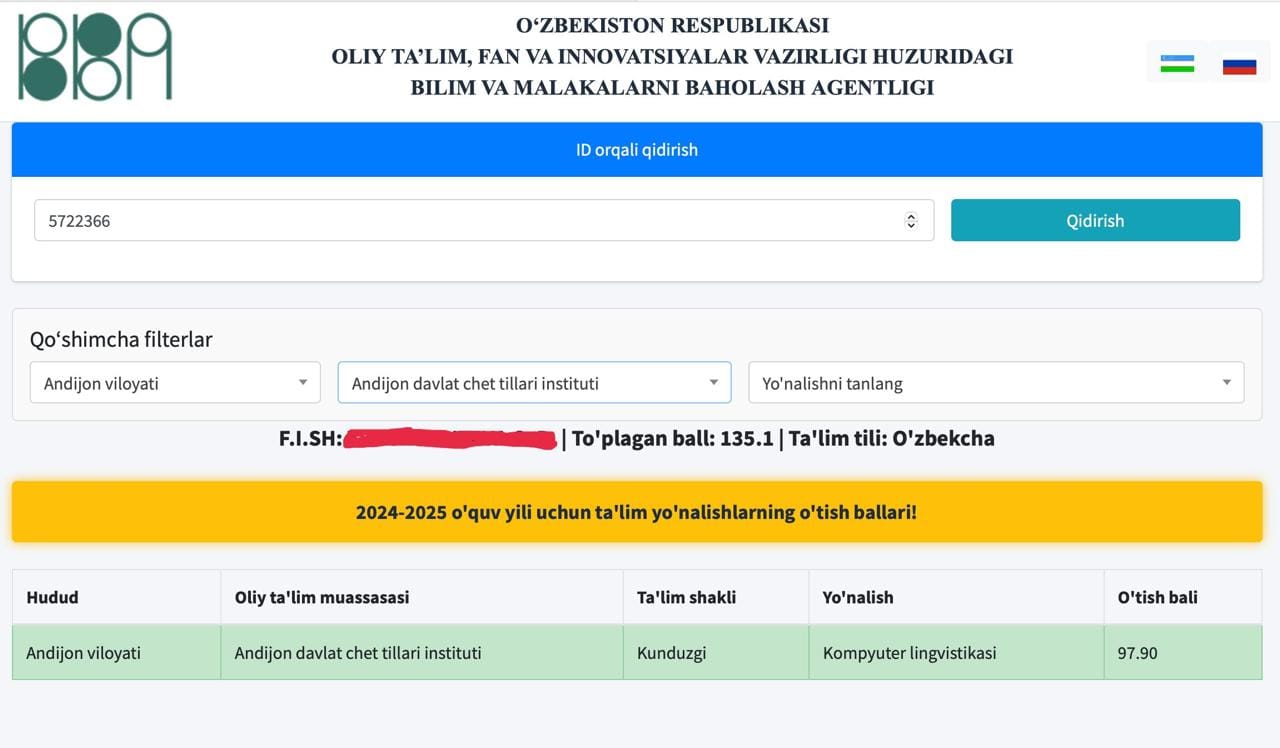 Abituriyentlar uchun yangi imkoniyat: joriy yil to‘plagan ballarining o‘tgan yilgi o‘tish ballariga mosligini tekshirish mumkin #abituriyent