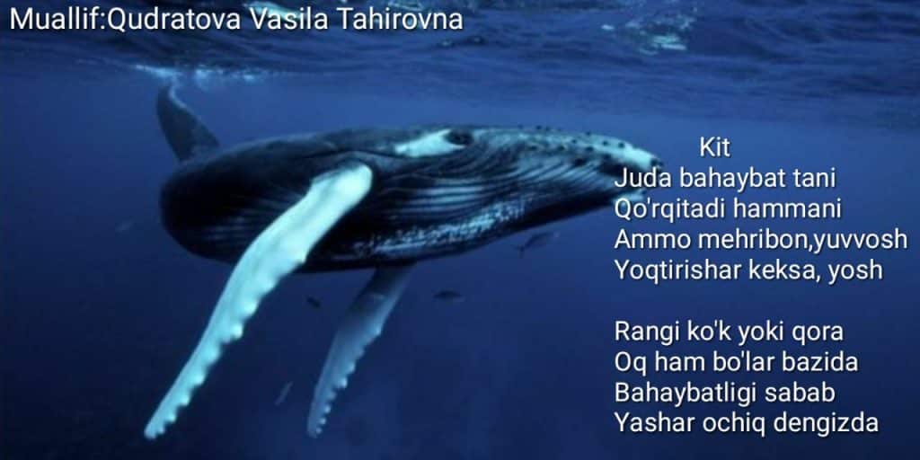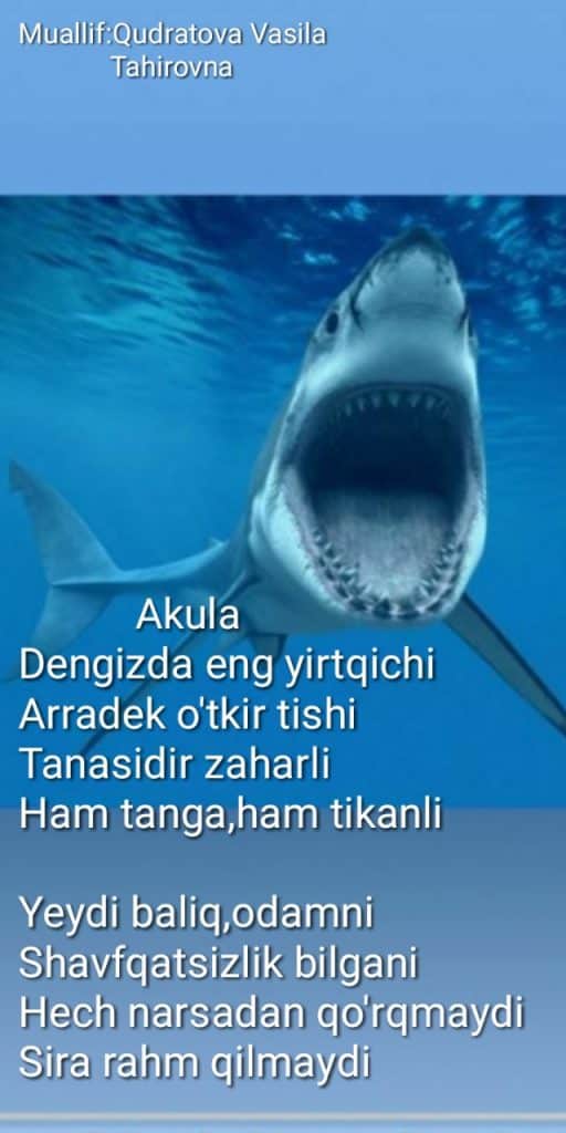 Dengiz jonzodlari haqida sherlar to‘plami bolalar uchun