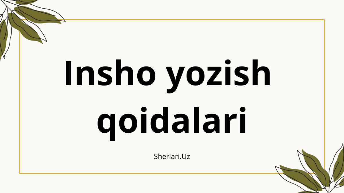 Insho – bu o‘quvchining fikr doirasini kengaytiruvchi, muallifni esa o‘z qarashlarini bayon qilishga undovchi yozma janrdir. U erkinlik, tafakkur va ijodiy yondashuvni talab qiladi. Shuning uchun yaxshi insho yozish uchun nafaqat savodxonlik, balki kuzatuvchanlik va fikrni to‘g‘ri ifoda eta olish ham kerak bo‘ladi.